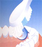 Такими же движениями очистите и внутренние поверхности. Для очистки внутренних поверхностей передних зубов, удерживайте щётку вертикально и аккуратно совершайте движения вверх-вниз кончиком щётки.