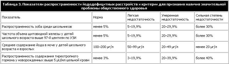 Таблица 4. Йододефицитные расстройства в отдельных европейских странах по классификации ВОЗ