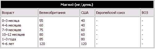 У грудных детей избыточные количества натрия выводятся не так легко, как у взрослых, поэтому потребление натрия грудными детьми должно быть умеренным. Примерно к 4 месяцам здоровые грудные дети могут начать выделение избыточной нагрузки натрия. Тем не менее, в пище для прикорма должно содержаться лишь очень малое количество соли. Этого можно достичь, не добавляя соли в пищу и избегая слишком соленой еды, такой, как соленья и продукты интенсивной переработки, копченые и вяленые продукты. У грудных детей гипернатриемия (повышенная концентрация натрия в крови) обычно связана с чрезмерным потреблением натрия с пищей неправильно подобранного состава и с обезвоживанием организма вследствие чистых потерь воды, превышающих чистые потери натрия. При тяжелом натриемическом обезвоживании ослабляется способность почек выводить натрий, что еще больше обостряет проблему (25). Рекомендуемые величины потребления натрия приведены в таблице 27 5.5. литература1. TAUROG, A. Hormone synthesis: thyroid iodine metabolism. In: Braverman, L.E. & Utiger, R.D., ed. Werner & Ingbar’s the thyroid. Hagerstown, MD, Lippincott Williams & Wilkins, 2000, pp. 47–81. 2. BERNAL, J. & NUNEZ, J. Thyroid hormones and brain development. European journal of endocrinology, 133: 390–398 (1995). 3. STANBURY, J.B. The damaged brain of iodine deficiency: cognitive, behavioral, neuromotor, educative aspects. New York, Cognizant Communication, 1993. 4. KOUTRAS, D.A. ET AL. The ecology of iodine. In: Stanbury, J.B. & Hetzel, B.S., ed. Endemic goiter and endemic cretinism. New York, John Wiley, 1980, pp. 185–195. 5. WAYNE, E.J. ET AL. Clinical aspects of iodine metabolism. Oxford, Blackwell, 1964. 6. PHILLIPS, D.I.W. Iodine, milk, and the elimination of endemic goitre in Britain: the story of an accidental public health triumph. Journal of epidemiology and community health, 51: 391–393(1997). 7. Trace elements in human nutrition and health. Geneva, World Health Organization, 1996. 8. GARROW, J.S. ET AL., ED. Human nutrition and dietetics, 10th ed. London, Churchill Livingstone, 1999. 9. DELANGE, F. Requirements of iodine in humans. In: Delange, F. et al., ed. Iodine deficiency in Europe. A continuing concern. New York, Plenum Press, 1993, pp. 5–16. 10. HETZEL, B.S. Iodine deficiency disorders (IDD) and their eradication. Lancet, 2: 1126–1129 (1983). 11. DELANGE, F. Endemic cretinism. In: Braverman, L.E. & Utiger, R.D., ed. Werner & Ingbar’s the thyroid. Hagerstown, MD, Lippincott Williams & Wilkins, 2000, pp. 744–754. 12. DELANGE, F. ET AL. Physiopathology of iodine nutrition during pregnancy, lactation and early postnatal life. In: Berger, H., ed. Vitamins and minerals in pregnancy and lactation. New York, Raven Press, 1988, pp. 205–213. 13. WILLIAMS, E.D. The role of iodine deficiency in radiation induced thyroid cancer. In: Delange, F. et al., ed. Elimination of iodine deficiency disorders (IDD) in central and eastern Europe, the Commonwealth of Independent States and the Baltic states. Proceedings of a conference held in Munich, Germany, 3–6 September 1997. Copenhagen, WHO Regional Office for Europe, 1998 (document WHO/EURO/NUT/ 98.1), pp. 73–81. 14. Indicators for assessing iodine deficiency disorders and their control through salt iodization. Geneva, World Health Organization, 1994 (document WHO/NUT/94.6). 15. MANNAR, V.M.G. The iodization of salt for the elimination of iodine deficiency disorders. In: Hetzel, B.S. & Pandav, C.S., ed. S.O.S. for a billion. The conquest of iodine deficiency disorders. New Delhi, Oxford University Press, 1994, pp. 89–107. 16. DUNN, J.T. The use of iodized oil and other alternatives for the elimination of iodine deficiency disorders. In: Hetzel, B.S. & Pandav, C.S., ed. S.O.S. for a billion. The conquest of iodine deficiency disorders. New Delhi, Oxford University Press, 1994, pp. 119–128. 17. DELANGE, F. Administration of iodized oil during pregnancy: a summary of the published evidence. Bulletin of the World Health Organization, 74: 101–108 (1996). 18. DELANGE, F. & LECOMTE, P. Iodine supplementation: benefits outweigh risks. Drug safety, 22: 89–95 (2000). 19. DELANGE, F. ET AL. Topical iodine, breastfeeding and neonatal hypothyroidism. Archives of disease in childhood, 63: 102–107 (1988). 20. DELANGE, F. ET AL. Risks of iodine-induced hyperthyroidism following correction of iodine deficiency by iodized salt. Thyroid, 9: 545–556 (1999). 21. BARLTROP, D. Mineral deficiency. In: Campbell, A.G.M. et al., ed. Forfar & Arneil’s Textbook of Paediatrics, 5th ed. Edinburgh, Churchill Livingstone, 1992. 22. Complementary feeding of young children in developing countries: a review of current scientific knowledge. Geneva, World Health Organization, 1998 (document WHO/NUT/98.1). 23. SAMMAN, S. Zinc. In: Mann, J. & Truswell, S., ed. Essentials in human nutrition. Oxford, Oxford University Press, 1998, pp. 151–157. 24. THACHER, T.D. ET AL. A comparison of calcium, vitamin D or both, for nutritional rickets in Nigerian children. New England journal of medicine, 341: 563–568 (1999). 25. FOMON, S.J. Sodium, chloride, and potassium. In: Fomon, S.J. Nutrition of normal infants. St Louis, MO, M