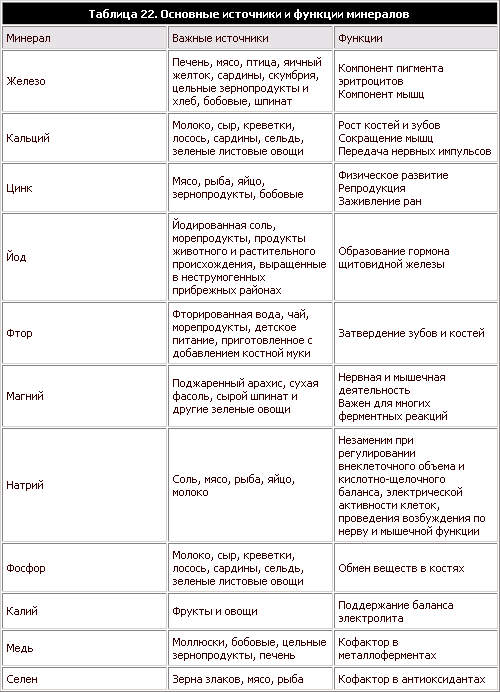 В странах, где дефицит йода представляет собой проблему здоровья общества, следует принять законодательный акт о сплошном йодировании соли и обеспечить его исполнение. Многие минералы представляют собой незаменимые питательные микроэлементы и играют жизненно важную роль в обеспечении роста, здоровья и развития. В данной главе рассматриваются те из них, которые наиболее важны при введении прикорма для грудных детей и детей раннего возраста, а именно: йод, цинк, кальций и натрий. Рекомендуемые величины потребления (РВП) тех минералов, которые здесь не рассматриваются (фосфор, магний, калий, хлор, медь и селен), приведены в Приложении к данной главе. В таблице 22 перечислены основные источники и функции ряда минералов. йодФункция Йод является незаменимым субстратом в синтезе гормонов щитовидной железы, которые относятся к числу важнейших регуляторов обмена веществ (1). Гормоны щитовидной железы нужны для нормального роста и развития, для поглощения кислорода в клетках и для поддержания интенсивности обмена веществ (2). Гормоны щитовидной железы также имеют большое значение для умственного развития и задержки умственного развития; гипотиреоз, вызванный йодной недостаточностью во время внутриутробного развития, может вызывать врожденную глухоту (3). Поэтому важно, чтобы как запасы в организме матери, так и рацион питания матери во время беременности содержали достаточное количество йода. Источники Содержание йода в растениях и организмах животных определяется окружающей средой, в которой они живут и растут. Особенно распространена йодная недостаточность в горных районах, но она может встречаться также и в зонах доисторического оледенения и в низинных районах, подвергающихся наводнениям. Поскольку большинство почв содержат мало йода, большинство пищевых продуктов являются бедными источниками йода, и продукты питания, выращенные в регионах йодной недостаточности, не могут обеспечить необходимого количества йода для живущего там населения или сельскохозяйственных животных (4). В нормальных условиях фрукты, овощи, злаковые, мясо и мясные продукты содержат от 20 до 50 микрограмм йода/кг. Единственным богатым натуральным источником йода является морская рыба (160–1400 микрограмм/кг). Если каждую неделю потреблять около 200 г морской рыбы, это должно обеспечить детей раннего возраста дозой йода примерно 50 микрограмм в день (5). В Соединенном Королевстве (6) и в некоторых странах Северной Европы главными источниками йода являются молоко и молочные продукты, так как по закону должно осуществляться йодирование корма для скота. Наблюдаются сезонные колебания; так, в странах Северной Европы с молоком и молочными продуктами в летнее и зимнее время потребляется соответственно около 45% и 70% суммарного потребления йода. Потребности и РВПВ