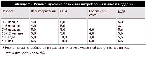 Потребности в цинке, содержащемся в пище, определяются частично физиологическими процессами, регулирующими потребности тканей в цинке и скорость его выведения из организма, а частично – изначально присущими характеристиками рациона питания. Потребности заметно повышаются в периоды «наверстывания физического развития», когда грудные дети и дети раннего возраста выздоравливают от нарушения питания или инфекции. Грудного молока полностью достаточно для удовлетворения базовых потребностей в цинке грудного ребенка в возрасте до 6 месяцев. Грудные дети усваивают около 80% цинка, содержащегося в грудном молоке (для сравнения: цинк в питательной смеси на основе коровьего молока усваивается на 30%, а в питательной смеси на основе сои – примерно на 15%). Однако оценки потребностей в цинке грудных детей в возрасте от 6 до 12 месяцев показывают, что уменьшающегося суточного содержания цинка в молоке будет недостаточно, если грудное молоко является единственным его источником. Поэтому особенно желательно подбирать для грудных детей старше 6 месяцев рационы питания с высокой биологической доступностью цинка. Низкий уровень потребления Недостаточность цинка вызывается главным образом рационом питания, содержащим мало продуктов животного происхождения и много фитата, или большими потерями цинка вследствие поноса. Клинические признаки недостаточности цинка разнообразны и неспецифичны (например, задержка физического развития), если недостаточность не имеет особенно тяжелой степени. Acrodermatitis enteropathica – это генетический дефект, который приводит к нарушению всасывания цинка и не является, таким образом, расстройством, связанным с питанием (21). Однако недостаточность цинка имеет сходные проявления, включающие в себя поражения кожи, ухудшение заживления ран, снижение вкусовых ощущений, снижение аппетита, понос и дефекты иммунной системы, ведущие к повышенной восприимчивости к инфекциям (7). Последствия минимальной или слабой степени недостаточности цинка менее очевидны, их можно легко не заметить. Часто единственными проявлениями слабой недостаточности цинка у людей являются замедление темпов физического развития и ослабление сопротивляемости к инфекции (7). Изучение влияния добавок цинка на физическое развитие грудных детей и детей раннего возраста в развивающихся странах показало противоречивые результаты. Однако в ситуациях, когда замедляется физическое развитие, добавки цинка, по-видимому, оказывают положительное влияние на рост детей (22). Кроме того, было высказано предположение о том, что, когда добавки цинка даются матери, это улучшает некоторые показатели исхода беременности, такие, как масса тела при рождении и окружность головы (23). Высокий уровень потребления Случаев острого отравления цинком отмечалось мало. К числу проявлений относятся тошнота, рвота, понос, высокая температура и сонливость; они отмечались после приема 4–8 г цинка. Было показано, что долговременная нагрузка высоких доз цинка, существенно превышающих потребности, мешает обмену других микроэлементов, прежде всего меди (7). 5.3. кальцийФункция Кальций необходим для структурной целостности и минерализации костей и зубов и играет важную роль в целом ряде обменных и регуляторных процессов. Он является сопутствующим фактором многих ферментов, необходи