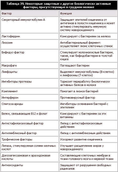 Грудное вскармливание защищает грудных детей от инфекций посредством двух механизмов. Во-первых, оно снижает или устраняет воздействие болезнетворных бактерий, передаваемых с зараженными продуктами питания и напитками. Во-вторых, грудное молоко содержит противомикробные факторы и другие вещества (таблица 39), которые укрепляют незрелую иммунную систему и защищают пищеварительную систему новорожденного ребенка, тем самым создавая защиту от инфекций, в частности, инфекций желудочно-кишечного тракта и дыхательных путей. Молозиво (молоко, вырабатываемое в первые несколько дней после родов) особенно богато защитными белками, и выбрасывать его не следует. Основными иммуноглобулинами в грудном молоке являются секреторный иммуноглобулин А и лактоферрин. Первый действует на поверхностях слизистой оболочки и защищает их от повреждения поглощенными микробными антигенами. Второй является связывающим железо белком, который конкурирует с бактериями за железо, снижая жизнеспособность бактерий и тем самым риск желудочных инфекций, в частности, вызываемых Escherichia coli и Stаphylococcus spp. В детских питательных смесях промышленного производства или в пище для прикорма этих иммунологических факторов нет. Поэтому дети, находящиеся на искусственном вскармливании, меньше защищены от инфекции. Грудное молоко также содержит много других защитных и трофических факторов, которые могут участвовать в защите и созревании пищеварительного тракта. Есть много подтверждений того, что исключительно грудное вскармливание в течение первых примерно 6 месяцев снижает младенческую заболеваемость и смертность. Это благотворное действие более всего проявляется там, где наиболее высока распространенность инфекции и низок уровень гигиены и санитарии (9–12), хотя и в промышленно развитых странах также наблюдаются положительные проявления в отношении респираторных заболеваний (13, 14). Кроме этого, дети обычно продолжают принимать грудное молоко во время приступов поноса, тогда как потребление других видов пищи и жидкостей может снижаться. Поэтому грудное вскармливание снижает отрицательное воздействие болезни на состояние питания и обеспечивает чистый источник жидкости для предотвращения обезвоживания организма. Концентрации противоинфекционных веществ в грудном молоке сохраняются и после первого года жизни и продолжают обеспечивать защиту от инфекции и после года. Кроме этого, выработка иммуноглобулинов не зависит от пищевого и социально-экономического статуса женщин (15). В целом ряде исследований, проведенных в странах с высокой распространенностью инфекции, у детей, продолжающих кормиться грудью и на втором году жизни, оказалась значительно более высокая степень выживания, чем у детей, которые прекратили кормиться грудью (9, 16–18). Больше всего данных, подтверждающих, что грудное вскармливание защищает организм от инфекционных заболеваний, имеется в отношении диспептических заболеваний: у детей на искусственном вскармливании значительно выше число приступов поноса, чем у детей, вскармливаемых грудью. У искусственников также выше, чем у детей на грудном вскармливании, риск некротического энтероколита – распространенного желудочно-кишечного заболевания в неонатальных реанимационных отделениях. Защитное действие грудного молока сохраня