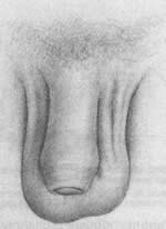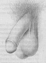 Рис. 3.12 Некоторые вариации во внешнем виде половых органов мужчины Хотя размеры члена в отсутствие эрекции сильно различаются у разных мужчин (в среднем его длина составляет 9,5 см), в эрегированном состоянии эти различия менее заметны. Можно считать эрекцию "великим уравнителем", так как у мужчин с небольшим членом его объем при эрекции увеличивается сильнее, чем у мужчин, у которых неэрегированный член крупнее (Masters, Johnson, 1966; Jamison, Gebhard, 1988). Размеры полового члена