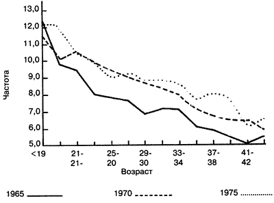 Рис. 15.1 Средняя частота половых сношений Средняя частота половых сношений у замужних женщин в США. Данные относятся к 4 неделям, предшествовавшим опросу (Trussell, Westoff, 1980) "Средние" частоты не дают представления об истинной картине, поскольку диапазон индивидуальных различий очень велик. Некоторые молодожены практически не занимаются сексом, тогда как другие совершают по несколько половых актов в сутки. Хотя в общем частота половых сношений с увеличением длительности брака понижается, у некоторых супругов сексуальные отношения с течением времени улучшаются, и их половая активность после 15-20 лет брака определенно повышается. По-видимому, частота половых сношений никак не зависит от уровня образования или рода занятий (Kinsey, Pomeroy, Martin, 1948; Kinsey et al., 1953; Hunt, 1975). Влияние глубокой религиозности супругов на их сексуальность остается неясной. Имеются данные, что у менее религиозных мужей частота супружеского секса выше (Kinsey, Pomeroy, Martin, 1948). У женщин аналогичная зависимость по одним данным отсутствует (Kinsey et al., 1959), по другим (опрос, проведенный журналом "Плейбой"; Hunt, 1975) – тоже имеет место, наконец, по третьим (Levin, 1975) частота супружеского секса у очень религиозных и нерелигиозных женщин одинакова, хотя первые чаще сообщали о своей активной роли в занятиях любовью. ОргазмНесмотря на утверждения ряда авторов, что мужчины достигают оргазма почти при каждом половом сношении со своими женами, по другим данным (Hunt, 1975) 8% мужчин в возрасте 45 лет и старше не достигают оргазма – одни иногда, другие чаще, а 7% женатых мужчин в возрасте 24-44 года – по крайней мере в 25% случаев. Это не означает, что эякуляция не происходит из-за каких-либо нарушений: иногда она уже имела место в другой сексуальной игре, а иногда у мужчины просто не возникло потребности в этом. Кинзи и др. (1953) сообщают, что 25% женщин, состоявших в браке один год, не испытывали оргазма при половых сношениях с мужьями, однако после 20 лет замужества эта цифра упала до 11%. В этом же исследовании 45% жен сообщили, что они стали достигать оргазма в 90-100% всех половых сношений на 15-м году замужества. По данным Ханта (Hunt, 1975), 53% замужних женщин испытывали оргазм "при каждом или почти каждом" половом сношении после 15 лет брака. По данным обзора, опубликованного в Redbook, 63% опрошенных замужних женщин достигают оргазма всегда или почти всегда и лишь 7% ни разу не испытали его. Для некоторых супружеских пар отсутствие оргазмической реакции может оказаться серьезной проблемой, о чем свидетельствует приведенный ниже рассказ 39-летней женщины. Хотя я чувствую себя достаточно свободной в сексуальном плане, готова пробовать что-то новое и легко возбуждаюсь, за 18 лет замужества я ни разу не испытала оргазма при половом сношении. Прежде это меня не очень беспокоило, однако за последние 5 лет я стала думать об этом все больше и больше. Мы с мужем испробовали все, что можно, без всякого успеха. Спустя какое-то время я стала терять интерес к сексу и меня охватила тяжелая депрессия. Это сильно сказывается на нашем браке, и я не знаю, что делать. (Эта женщина и ее муж в дальнейшем прошли у нас курс сексотерапии и стали довольно легко достигать оргазма при половом сношении. Иногда для того чтобы справиться с долголетними проблемами, гораздо лучше обратиться к врачу, чем действовать по принципу "сделай сам".) (Из картотеки авторов) Другим су