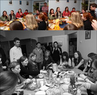 Слева направо: ДашаТ и Дима, Паша и ЛенаК, Аня и Олег, ЮляП и Дима, Миша и ДашаГ, НаташаТ и Денис , Настя и Леша, МММ, ЮляН и Вадим, НастяХ и Альберт. Второй ряд: за мной Ася и Алексей, ЮляС, Оля и Дмитрий, Андрей и Олеся Нет на этой фото: Майи и Димы, НаташиР и Димы, ЛеныЛ и Михаила, Марины, Кати и Коли, Ирины и Антона Они есть на новогодней фотке :) И еще в конце цикла к нам присоединились Саша и Толя Встреча у ДашиТ 20 декабря 2006г (снимали телефонами, так что извините за качество). БК в домашней обстановке!